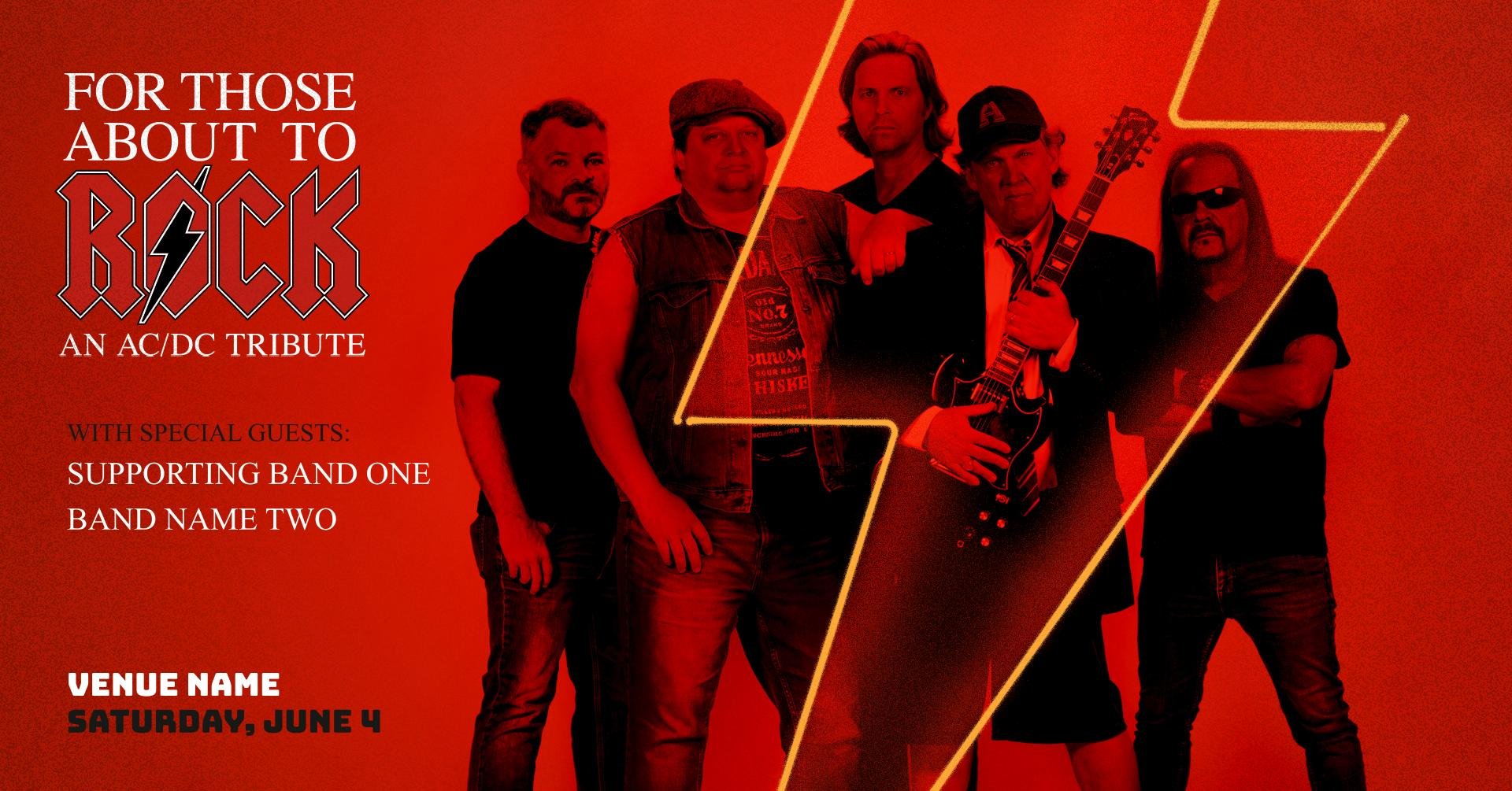 For Those About to Rock is a local cover band who sought out a brand identity that clearly communicated their status as an AC/DC tribute, along with new imagery for use in social sharing, profile photos, and event banners.